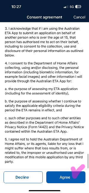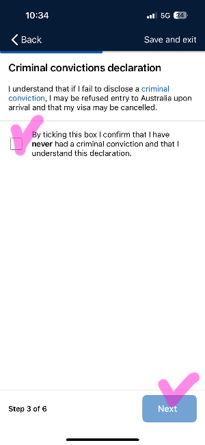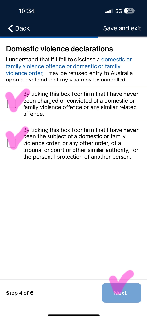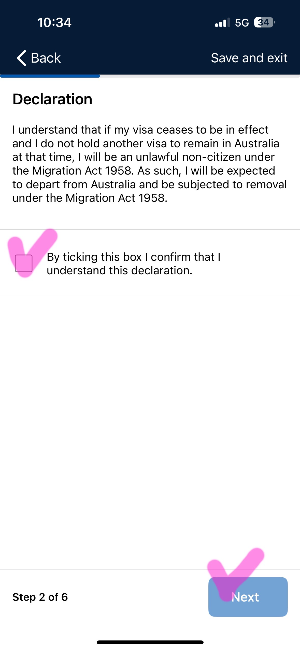 Declaration 호주 이민법 관련 내용을 이해했다는 내용으로 체크해 주시면 됩니다.