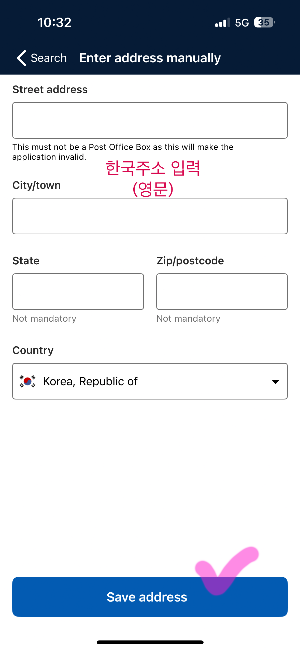 주소는 영문으로 입력해야 합니다.