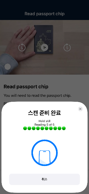 여권을 스캐닝 하고 나면 여권 정보 NFC로 가져오는 작업인데